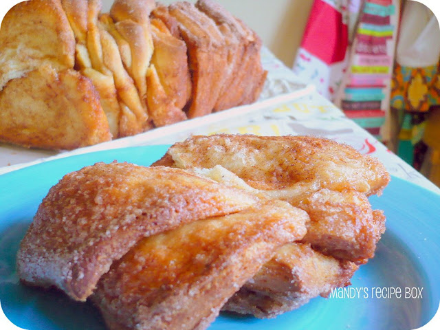 I did it. I finally made this infamous bread. I saw it on Joy the Baker and Pintrest and I couldn't get it out of my head. I had to do it. Oh.my.word. It looks complicated, but it's not. Even if it were, it doesn't even matter. It would be worth it. My son and I ate most of it before dinner (like right before dinner). We couldn't help ourselves. Fresh out of the oven, it's so warm and crunchy and gooey and yummy. It tastes best served fresh like that, but it's not bad warmed up as leftovers (ha! like there was any). That's what Joy says.
