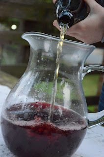 and the rest into the pitcher. Pour into glasses and serve immediately. I don't really have the photography skills to make it look spooky and "bloody" and frankly my kids were so enamored with how good it tasted, that they couldn't have cared less about what it looked like. But I suppose it was the right color for blood and could easily be made to look spooky with the right lighting. :)