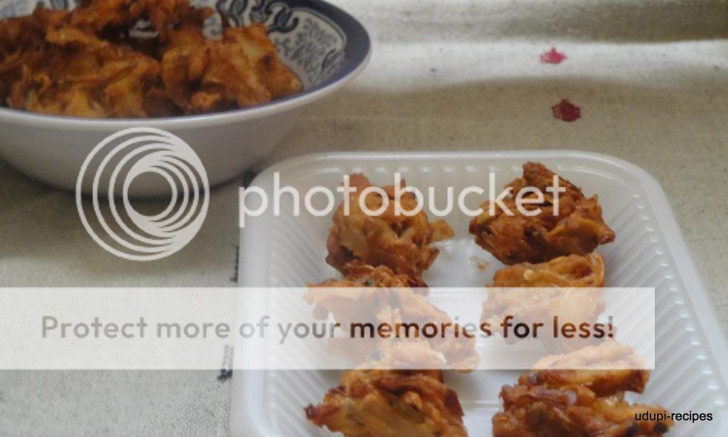 Pakoda is a very good tea time snack that tastes awesome with chutney, kitchup or as is. Pakodas, bajjis are enjoyed a lot during winter or rainy season. I do prepare ladies finger pakodas and onion pakodas every now and then. Udupi hotels serve this crispy onion pakodas during evening hours. Unlike other pakodas the batter for onion pakoda is quite different. Also we don't make a particular shape while dropping the batter to oil. Hope this post helps you prepare crispy, crunchy onion pakodas.