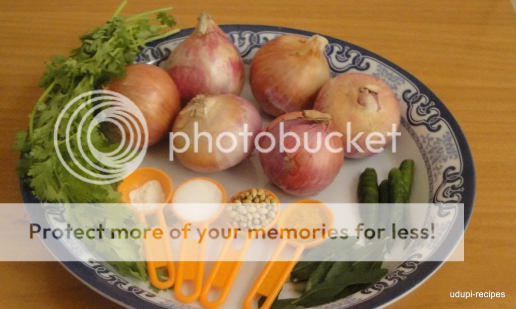 - Slice the onions lengthwise, chop curry leaves, coriander leaves, green chillies finely. Keep them aside.